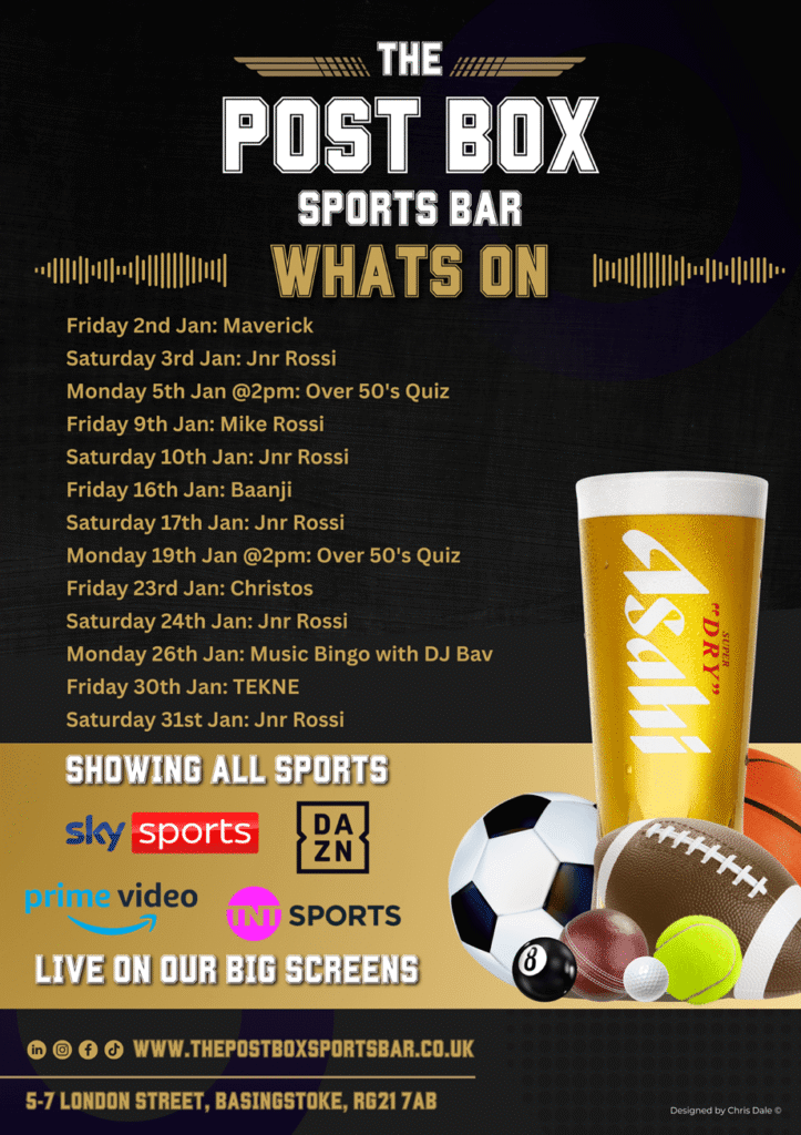 Come see in the New Year 2025 with us at the Post Box Sports Bar. Join us on New Years Eve!